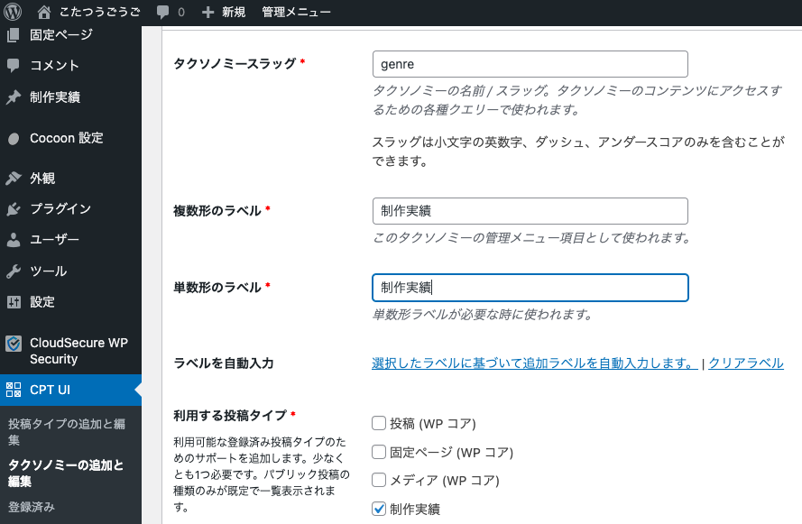 カスタムタクソノミーとカスタム投稿タイプと紐付け